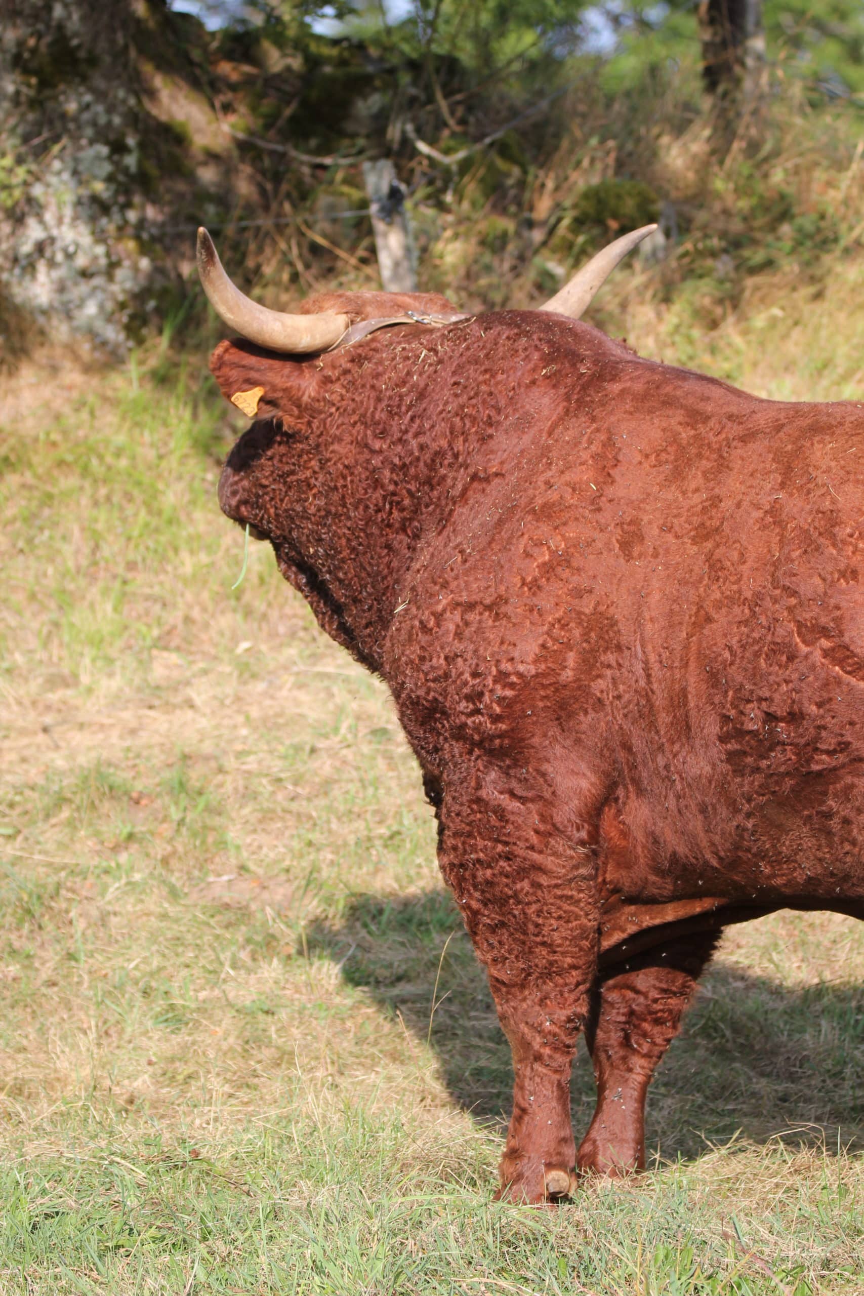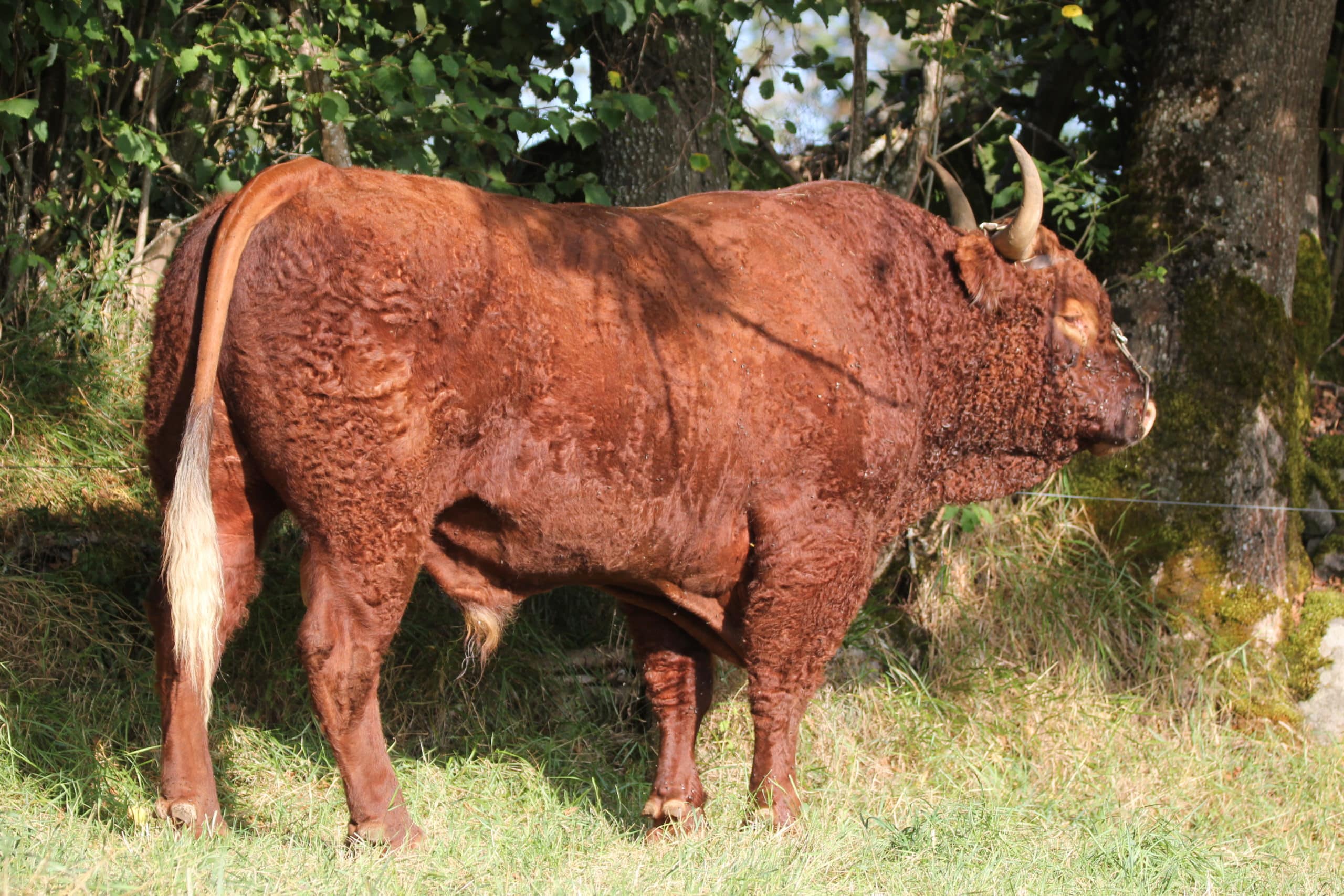 Taureau avec une gueule de père. Une allure et une rectitude parfaite. Son pedigree est une belle image et un sans faute avec un pointage des ascendants de haut niveau. Sa mère Glorieuse, une vache de 14 ans, rustique, solide sur ses aplombs et qui, l’année prochaine, avoir va avoir son 12ème veau.